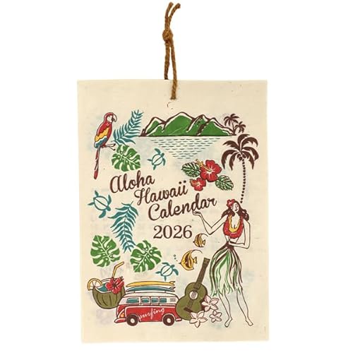 2026年のハワイカレンダー。フラダンスやホヌ、ビーチ、サーフィン、ウクレレなどの美しい景色が満載。アロハな雰囲気を楽しめる壁掛けポスターで、インテリアとしても最適!