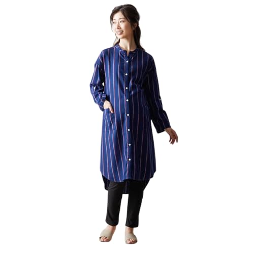 [ベルメゾン] マタニティパジャマ 授乳対応 ビエラ起毛 綿 長袖 シャツワンピ 産前 産後 前開き ルームウェア・パジャマ ネイビー系ストライプマタニティMの製品情報