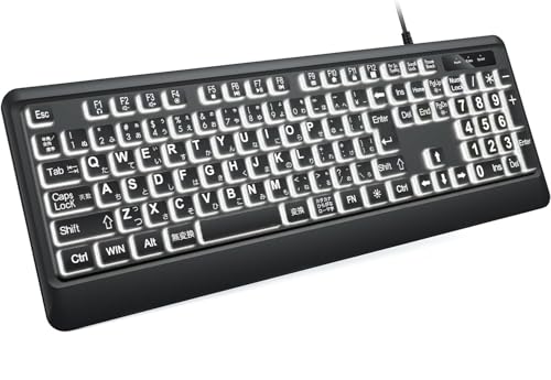 DHKBLのフルサイズキーボードはホワイトLEDで明るく、静音設計。USB有線接続で安定性あり。折りたたみスタンド付きで、108キー日本語配列に対応。Windows、PC、ノートパソコンでも使えます。