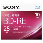 ソニーのブルーレイディスク BD-RE 25GBは、繰り返し録画用のディスクで、地デジ約3時間の録画が可能です。2倍速ダビング対応で、10枚入り、ケース付きのセットです。