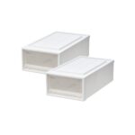【通販限定2個セット】天馬のフィッツケースは、幅30×奥行53×高さ18cmの日本製収納ボックスです。たわみにくく、再生材を使用したサステナブルなホワイトクリア色で、クローゼットに最適。