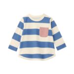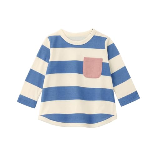 [ベルメゾン] Tシャツ 長袖 ポケット配色 ボーダー 男の子 ベビー アイボリー×ブルーボーダー 80の高価買取ITEM