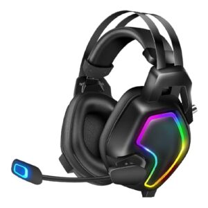 ゲーム用マイク付きオーバーイヤーゲーミングヘッドフォン。ステレオサウンド、LEDライト搭載。快適なフィット感で長時間プレイ向け。黒色デザイン。
