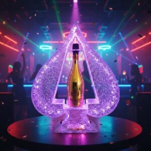 ROXXN LED酒ボトルの表示棚 & テキーラ観覧車 、スペードのキング、King of Spades 「極彩幻界:黒桃の紋章が奏でる光の交響詩」 バー、居酒屋、キャバレー、歌舞伎町まで、商用・家庭用を問わずあらゆる空間を照らす一本