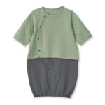 [ベルメゾン] ツーウェイオール 女の子 男の子 あったか ニットキルト レイヤード風 ベビー用ロンパース・カバーオール スモーキーグリーン×チャコール 50~60 高価買取中