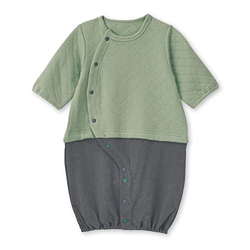 [ベルメゾン] ツーウェイオール 女の子 男の子 あったか ニットキルト レイヤード風 ベビー用ロンパース・カバーオール スモーキーグリーン×チャコール 50~60の高価買取