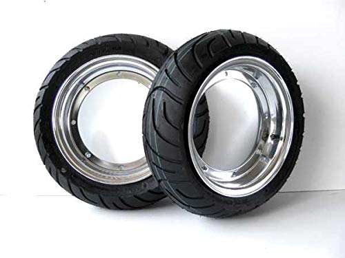 田中商会の10インチアルミホイール・タイヤセットは、未組込で3本ハブ用の仕様です。ホイールサイズは3.5J、タイヤサイズは130/60-10で、シャリィ50やダックスに適しています。