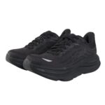 ホカ(HOKA)Bondi 9 Wideは快適なクッション性とサポートを提供するランニングシューズです。女性用ブラックカラー、サイズ24.5cmで、ジョギングや長距離走に最適です。