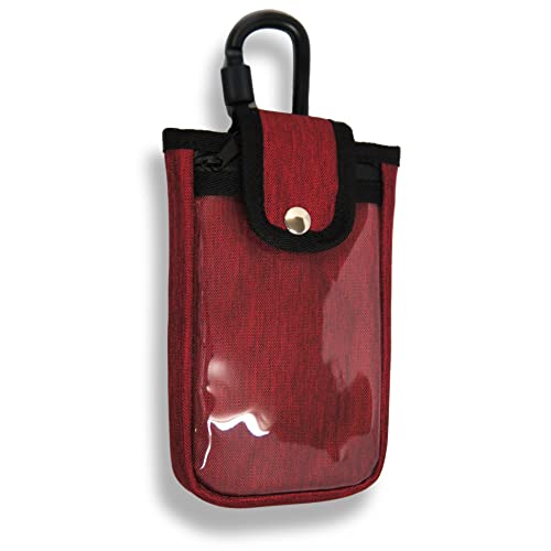 レッドワークポーチは多機能で、スマホ収納可能な透明窓付き。止水ファスナー搭載で雨にも強く、カラビナとベルトループ付きで持ち運びに便利。男女問わず使えるアウトドアや作業用の工具ポーチです。
