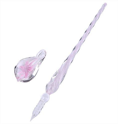 tomtaskのガラスペンセットは、透明なペンとペン置き、インク、Gペン、万年筆用のペン先が含まれています。美しいデザインで、ピンクのアクセントが魅力です。