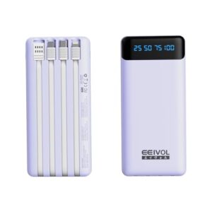 エイヴォル モバイルバッテリー 20000mAh 4本ケーブル内蔵 5台同時充電 LCD残量表示 懐中電灯 軽量 小型 大容量 携帯バッテリー スマホ充電器 持ち運び便利 携帯充電器 アイホン/Android 全機種対応 コンパクト パワーバンク アウトドア 防災 緊急用 停電対策 機内持込可能 PSE認証済 適格請求書発行可 (パープル)