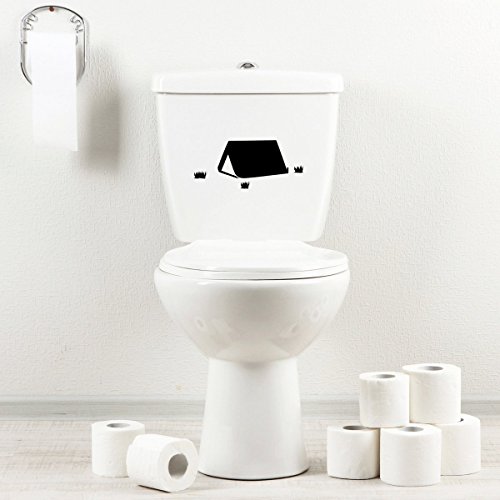StickAny トイレデカールシリーズのテントキャンプステッカー。トイレボウル、バス、シート用で、シンプルでスタイリッシュなブラックデザイン。適応性が高く、キャンプ愛好者に最適です。