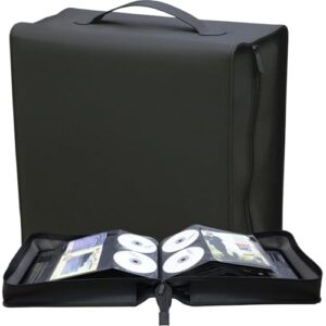 Salajory CD DVDストレージケース、ハンドル付きDVD収納バッグ、PUカバーDVDストレージバインダー ブルーレイ映画音楽オーディオディスク用 – ディスクユニット200枚&ブックルポケット100個