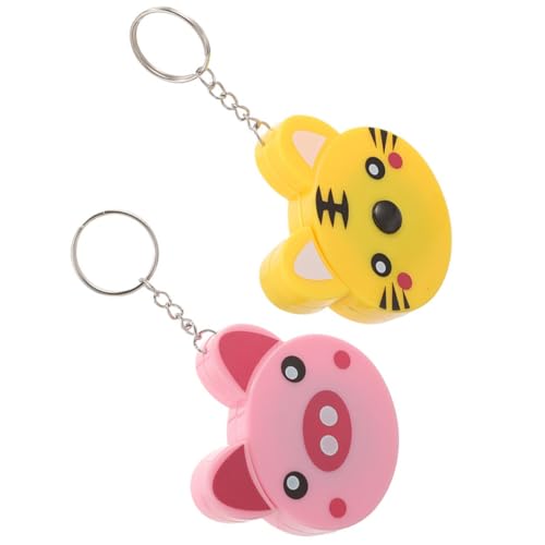 DEARMAMYの可愛らしい漫画動物デザインのポータブルABS素材製メジャーは、女性向けの日常計測ツールです。2個セットの引き込み式ミニ巻尺で、キーリング付きで便利です。