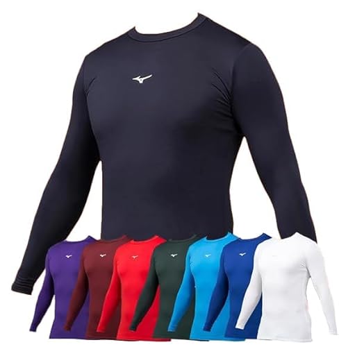 ミズノのバイオギアローネック長袖ユニセックス野球シャツ(12JABC11)は、吸汗速乾性とUVカット機能を備え、ストレッチ素材で動きやすさ抜群。パープルのOサイズで、SOLVシール付き。