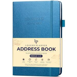 Legend Planner アドレス帳 アルファベット順タブ付き – 電話アドレス帳 電話番号 住所 Eメール連絡先 パスワード 重要な日付 – Mサイズ 5.2 x 7.7インチ ハードカバー ミスティックブルー