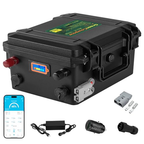 GreenCowpowの12V 100Ah LiFePO4バッテリーは、1280Whの大容量と100AのBluetooth BMSを内蔵。出力は1280W、10年以上・8000回以上のサイクル耐久。キャンピングや防災に最適。充電器、説明書付属。