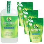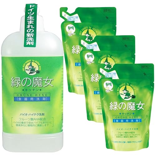 緑の魔女キッチン用セットは、420mlと360mlのボトルが各3本セットになっています。天然由来成分を使用し、環境に優しい洗浄力を提供。家庭での使用に最適です。