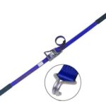 ALLSAFEラッシングナローフック(Jフック)固定1m×7m。青いトラックベルトで荷物をしっかり固定。耐久性が高く、運搬や荷役時の安全対策に最適。車両固定バンドとして使用可能。