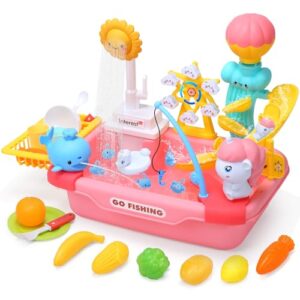 おままごとセット Cute Stone おままごと お風呂 おもちゃ知育玩具 食器洗い機 おもちゃ 水遊び 玩具 大容量シンク 循環出水 リアルな食材 魚釣りゲーム 滑り台 観覧車 クジラ噴水 ウォータースライダー ごっこ遊び 誕生日プレゼント 入園祝い