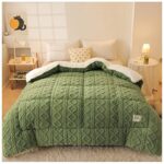 冬に最適な布団ツイン、ラムカシミア毛布。柔らかく暖かいキルトは200x230cmで、すべての季節に対応。ダークグリーンでお部屋をおしゃれに演出します。