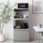 家具350 Topu トープ レンジ台は、スライドトレー付きの2段構造で、グレーのスタイリッシュなデザインが特徴です。おしゃれなインテリアにもぴったり。