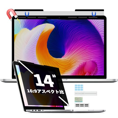 Halloive 14インチプライバシーフィルターは、画面の視認性を保ちながら周囲からの覗き見を防ぎます。ブルーライトカット機能付きで目に優しく、簡単に取り付け可能です。