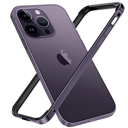 MQman iphone14promax アルミバンパー シリコン裏地 一体型 サイドフレーム 薄型 レンズ保護デザイン シンプル メタルカバー (iPhone14ProMax, ディープパープル)