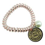 メロウストアのモチーフ付きスプリングゴムは、華やかなヘアアクセサリー。伸縮性に優れたワンサイズで、髪をしっかりまとめます。タグはサーモン色で、可愛らしさが引き立つデザインです。