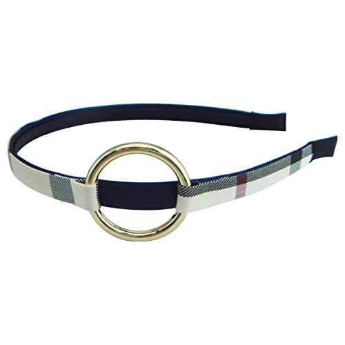 メロウストアのネイビーのカチューシャは、ゴールドリング付きのチェック柄デザイン。スリムな形状で、さまざまな髪型に合うヘアアクセサリー。レディース向けで、ワンサイズで調整可能。