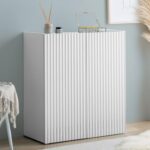 家具350 キャビネットは、スリムなデザインの白い木製本棚です。おしゃれなチェストとしても使用可能で、サイドボードやシェルフとしても活躍します。キャスター付きで移動も簡単、収納力も優れています。