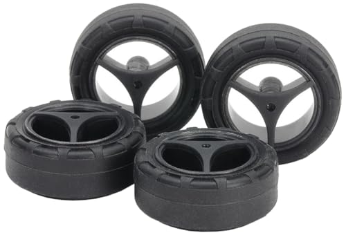 タミヤのミニ四駆グレードアップパーツ、No.543はスーパーX・XX用のスーパーハード小径ナロータイヤ(24mm)とカーボン強化ホイール(3本スポーク)がセットになっています。