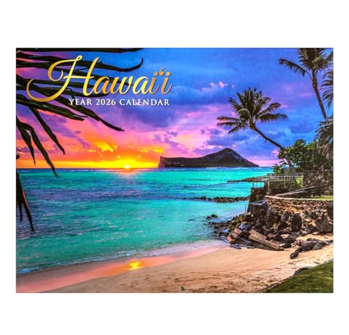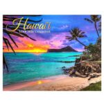 2026年ハワイアンカレンダー。ハワイ直輸入の限定品で、サンセットや海、椰子の木が描かれた美しい風景が楽しめる。ハワイのインテリアとしても最適なアイテム。