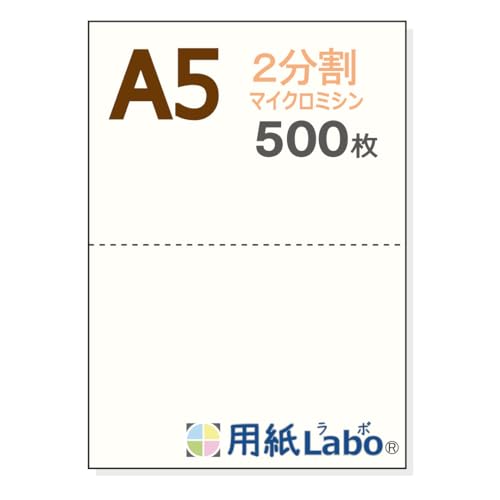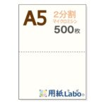 用紙LabのA5サイズ白紙は、2分割のミシン目入りで、55Kgの厚さです。500枚入りで、マイクロミシン加工が施されており、使いやすさと品質を兼ね備えた商品です。