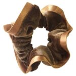 メロウストアのシュシュは、ベロア風のサテン生地で作られたシンプルな無地のヘアアクセサリーです。縁取り付きで、洗練されたデザイン。ワンサイズで、ブラウンカラーが落ち着いた印象を与えます。