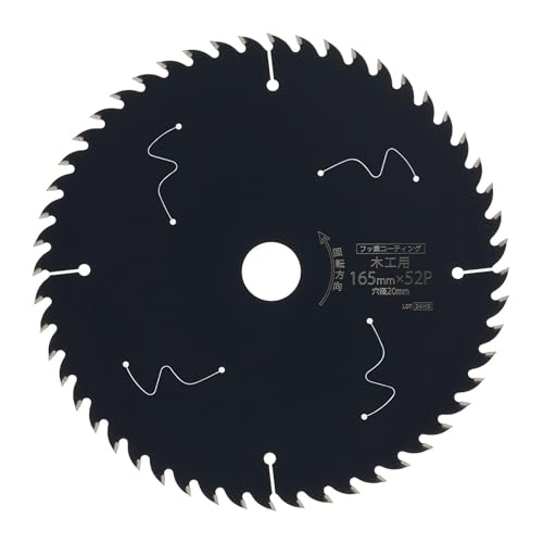 髙儀のEARTH MANチップソーは、165mm×52Pのフッ素コーティング仕様で、木工用に適した静音タイプ。レーザースリット付きで防錆・防ヤニ効果があり、軽切れが特徴。一般木材や合板、構造用合板に対応します。