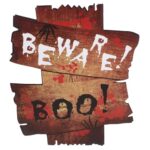 BCOATHのハロウィン看板は、古びた木目調と血しぶきデザインが特徴。芝生広告ボードや道路標識ガイドとして、パーティー装飾に最適です。