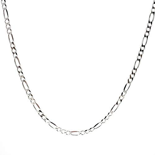 イタリア製のシルバー925フィガロチェーンネックレス。幅3mm、厚さ1mm、長さ55cm。男性向けで、スタイリッシュなデザインが魅力。耐久性も高く、日常使いに最適。