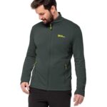 [ジャックウルフスキン] メンズ 保温 フルジップフリース (ブランドロゴ・通気性) [ 1710521 / KOLBENBERG FZ M ] 高機能 T0138_black olive/firefly EU_L 高価買取中
