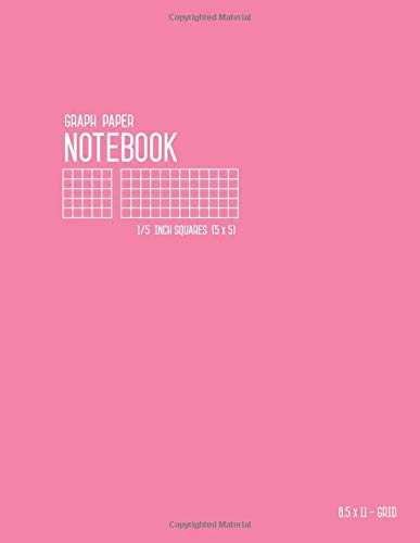 方眼紙ノート8.5×11インチ、ピンクのラージサイズ。1インチあたり5グリッド、ページ番号付き。数学や科学に最適な四重罫線のグラフジャーナル。