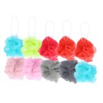 NULYLUの10個メッシュバススポンジは、耐久性のあるナイロン素材で作られ、吊り下げ可能。シャワーボールとして使えるシャワー専用の入浴用ボディ洗浄パフです。清潔ケアも簡単。