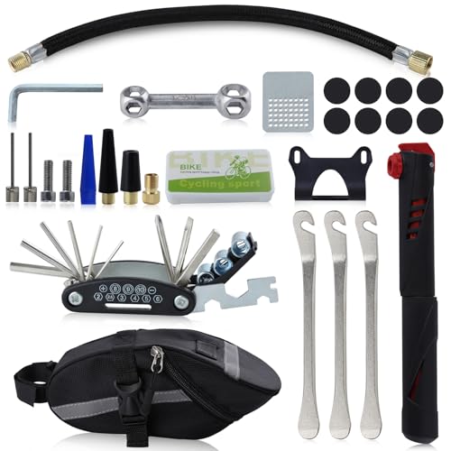 LEONTOOLの自転車修理工具キットは、軽量でコンパクトな収納バッグ付き。六角レンチやイージーパッチキットを含み、ロードバイクやマウンテンバイクのメンテナンスに最適です。持ち運び便利な多機能修理キット。