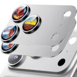 Jurqqer iPhone 17 Pro Max用のカメラ保護用9H強化ガラスレンズカバー。全面保護で防指紋・高透過率。アルミ合金採用で耐衝撃性があり、露出オーバーを防ぎます。2枚セットで安心のカバー。