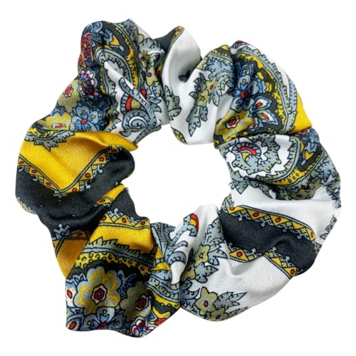 メロウストアのシュシュは、サテン素材を使用した花柄デザインです。マスタードカラーが特徴で、髪を華やかに彩るヘアアクセサリーです。ワンサイズで、さまざまなスタイルに合わせやすいアイテムです。