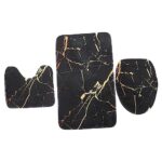 Alipis 1セットの黒大理石シャワーカーテンとバスマット、便座カバーがセットになっています。滑り止めのカーペットも含まれており、浴室の装飾に最適です。