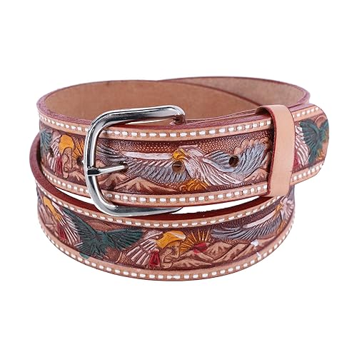 CTM® イーグルプリント ツールアステカベルトは、スタイリッシュなタン色で、サイズ40の快適なフィット感を提供。耐久性に優れた素材で、様々なコーディネートに最適です。