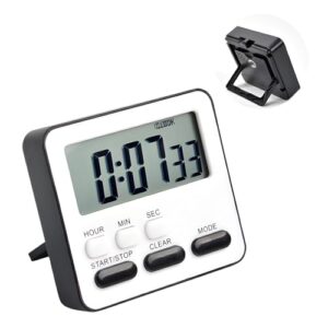 ポクミル 3in1多機能タイマー キッチンタイマー アラーム 大画面表示 大音量 磁石式とスタンド式設置 マグネット 無音光/音アラーム切替式 勉強/キッチン/スポーツ兼用 (ブラック)