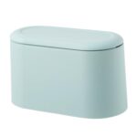 Amosfunのデスク用収納容器は、ミニバケツデザインで、キッチンやホームオフィスでのごみ入れに最適です。ふた付きでオープントップ、青色のスタイリッシュな仕上がりが特徴です。
