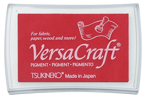 ツキネコのスタンプ台バーサクラフト Lは、紙・木・布用で、サイズは横76mm×縦47mmのポピーレッド(#114)です。インクの発色が良く、様々な素材に対応しています。
