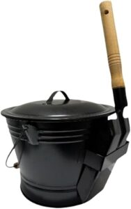 Scifimp家庭用暖炉灰受けバケツ 2点セット 鉄製耐用 蓋付き防塵 シャベル付き作業便利 薪ストーブ・暖炉専用 灰収納・清掃に最適 家庭用 耐熱性良好 持ち運び容易 暖炉周り整理に必携